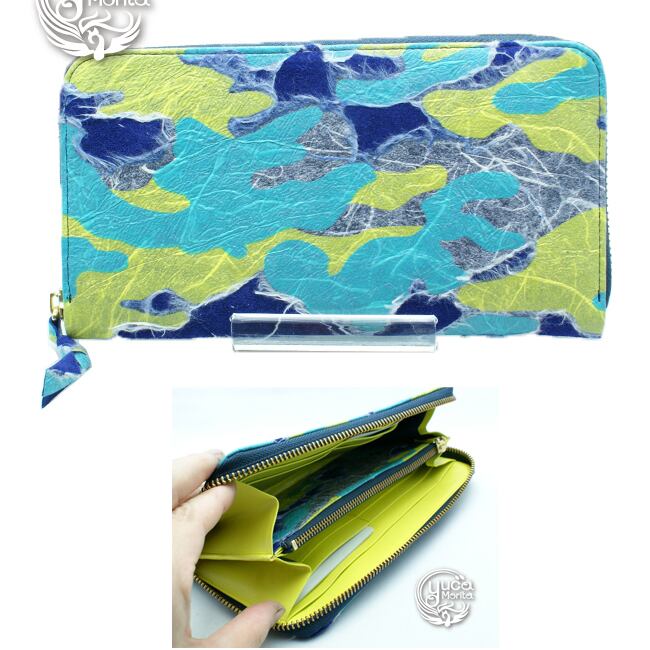 牛革に和紙を特殊処理で貼り付けた日本ならではの技術を、Yuca Moritaオリジナル限定カラ―で製作。
